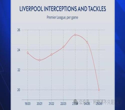 本赛季利物浦的场均拦截和抢断数据明显低于此前6个赛季。