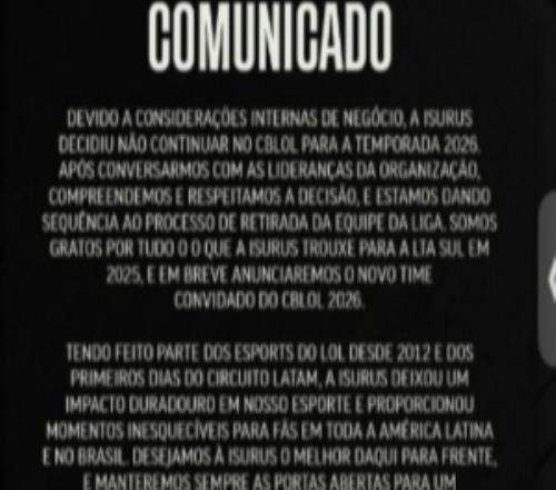 巴西赛区官宣:拉美队伍ISG离开CBLOL将寻找新赛区加入