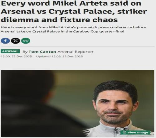 关于本场比赛,其实水晶宫最近也是很疲劳,他们的阵容更难以支撑多线作战,我并不是小看对手,也不是说要放弃联赛杯,但这场比赛应该轮换下,因为阿森纳有这个能力去轮换!