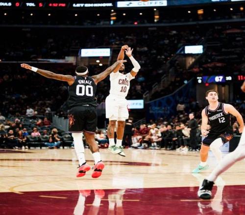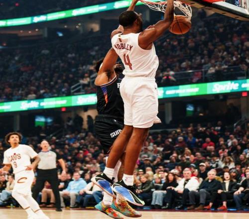 骑士能够在主场取得一场大胜,进攻核心米切尔功不可没,在太阳一度派出狄龙盯防他的情况下,仍然凭借18投10中的效率,交出了34分、10个篮板、7次助攻、2次抢断和1个封盖的全面个人数据。